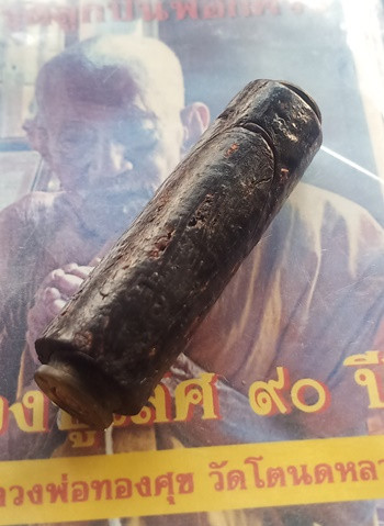 ตะกรุดเนื้อตะกั่วหุ้มไผ่ตัน หลวงพ่อทบ วัดพระพุทธบาทชนแดน ปี 2483-2519 ขนาด 5 นิ้ว |