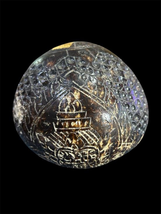 วัดใจ..100 กะลาตาเดียว แกะพระราหูเก่า มีเม็ดกริ่งด้านใน เส้นผ่าศูนย์กลางประมาณ 4 นิ้วกว่า |