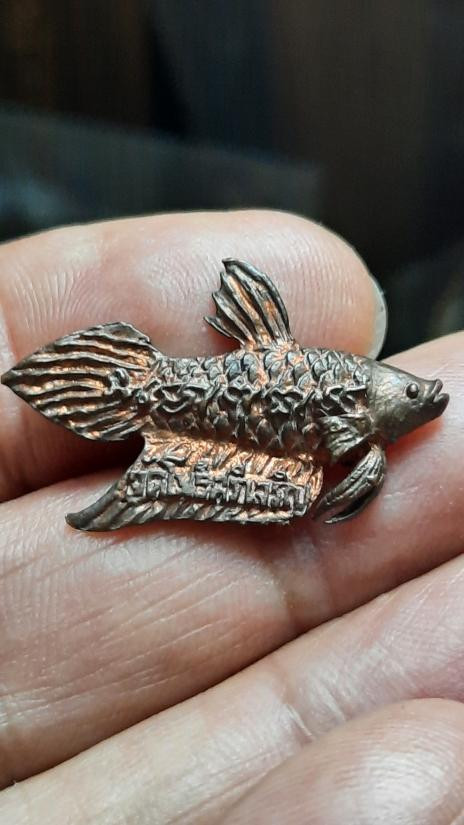 แดงเคาะแรก...ปลาตะเพียน พิมพ์จิ๋ว หลวงพ่อจง วัดหน้าต่างนอก เนื้อทองแดงกะไหล่เงิน (หายาก) |