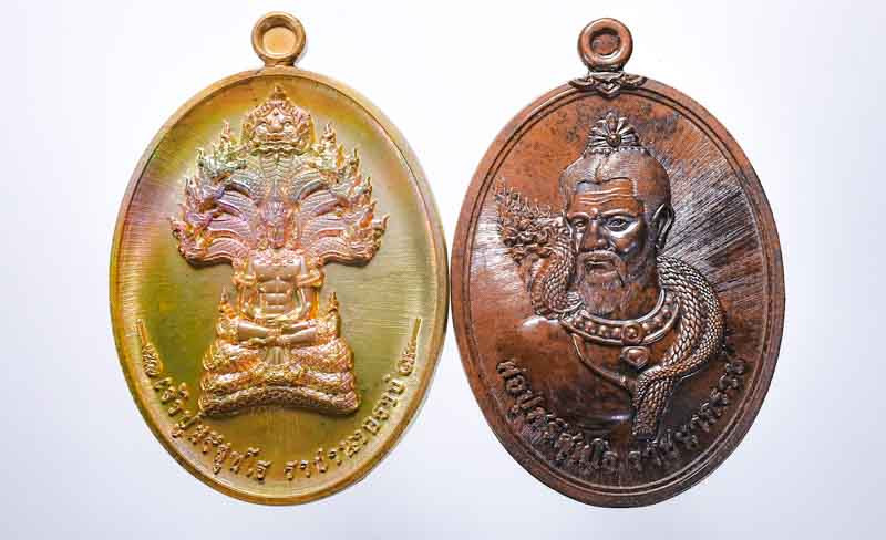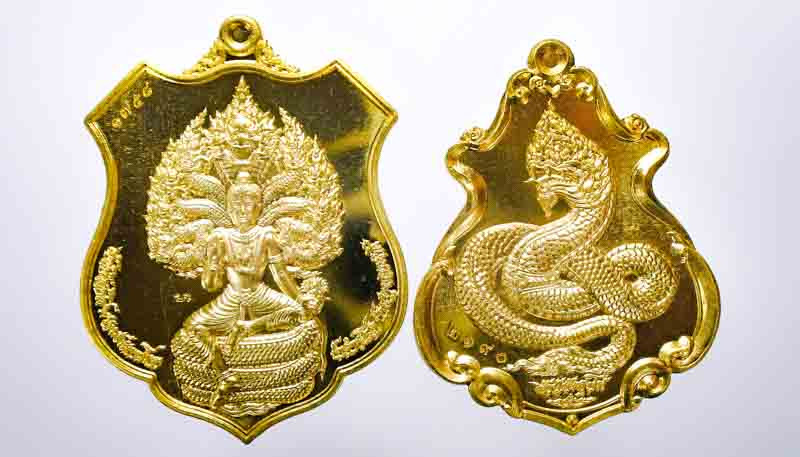 พญาครุฑ วัดหน้าพระบรมธาตุ นครศรีฯ เหรียญเนื้อทองทิพย์รุ่นเสริมบารมีรวยทรัพย์ปี๖๐ สวยๆ |