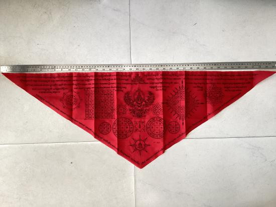 เคาะเดียวแดง 100 ผ้าประเจียด พญาครุฑ ไม่ทราบวัด สีแดง พิมพ์ดำ ขนาด กว้าง 14 นิ้ว ยาว 40 นิ้ว |