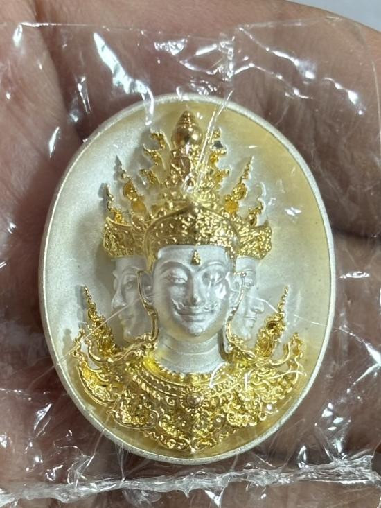 เหรียญพระพรหม-หลังหนุมานเชิญธง หลวงพ่อแล วัดพระทรง จ.เพชรบุรี ปี2547 (พิมพ์ข้าวหลามตัด กรอบชุบทอง เลี่ยมเดิม กล่องเดิม สภาพสวย นิยม) |