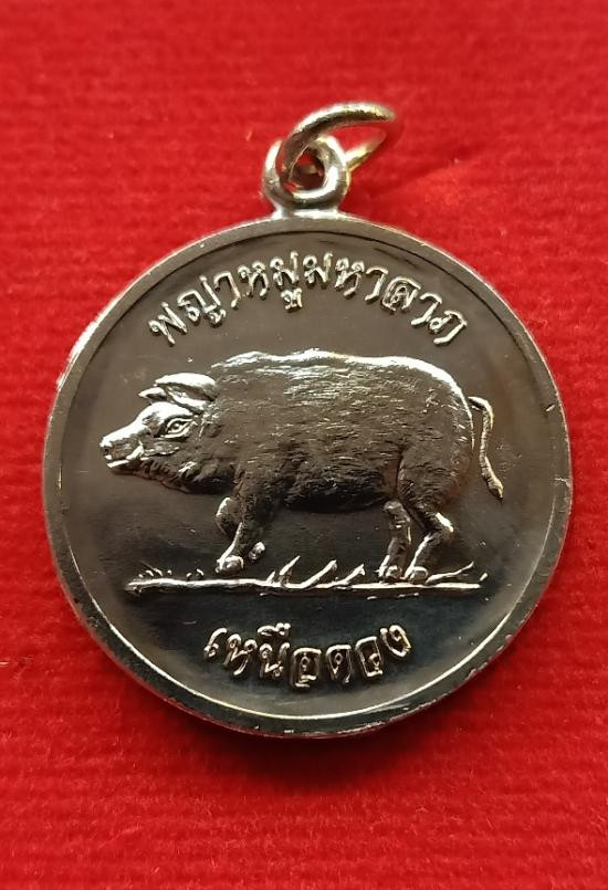 หลวงปู่มหาศิลา สิริจันโท ธรรมอุทยาน จ.กาฬสินธุ์ พญาหมูมหาลาภ รุ่น เหนือดวงหลังยันต์ขวัญถุง เนื้ออัลปาก้า |