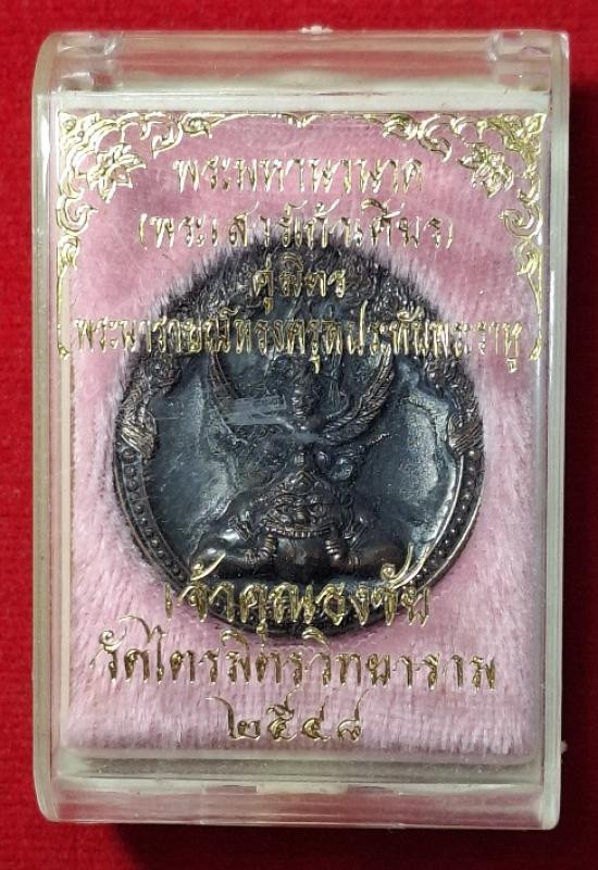 เหรียญพระนารายณ์ทรงครุฑฯ เนื้อนวะ เจ้าตุณธงชัย วัดไตรมิตรฯ 2545 |