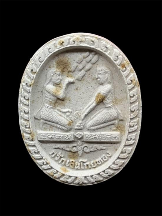 พระขุนแผนเทพรัญจวน หลวงปู่สวัสดิ์ ภูมิสาโร วัดป่าแสนอุดม จ.อุบลราชธานี เนื้อผงพรายกุมารสัตตะมหาภูต (ก้นครก) หมายเลข ๑๖๑๙ พิเศษหลวงพ่อเมตตา จารนอก กรอบ |