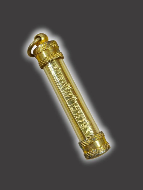 ตะกรุดเนื้อตะกั่วหุ้มไผ่ตัน หลวงพ่อทบ วัดพระพุทธบาทชนแดน ปี 2483-2519 ขนาด 5 นิ้ว |