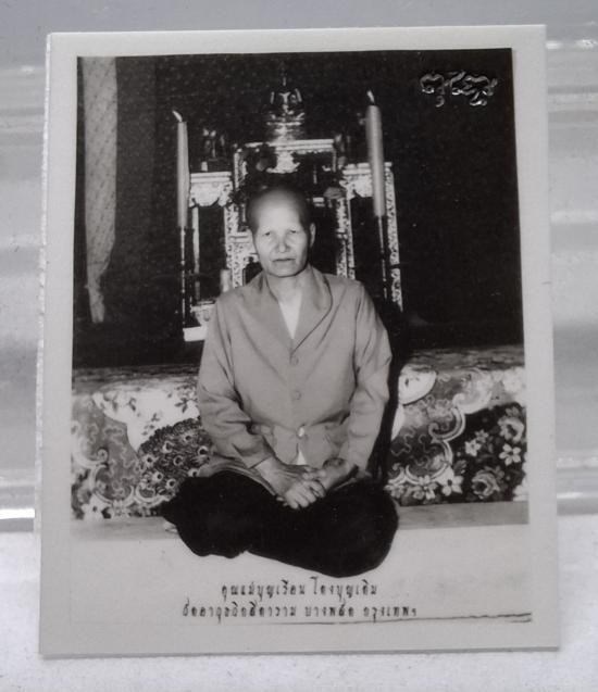 ภาพถ่ายคุณแม่บุญเรือน วัดอาวุธ ขนาด2.5x3ซม.ภาพที่อัพจากภาพต้นฉบับที่คุณแม่อธิษฐานจิตไว้ ภาพถ่ายอัดด้วยกรรมวิธีโบราณ ความคมชัดสวยงามมาก ตอกโค๊ตพุทโธ (งานช่างเดียวกับที่ทำภาพถ่ายของอ.ดิเรก วัดหนองทราย |