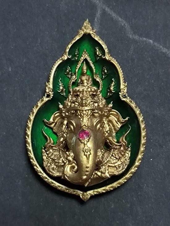 เคาะเดียวแดง ต่ำกว่าราคาจอง เหรียญพระพิฆเนศ รุ่นมหาเทพสุขนิรันดร์ เนื้อบรอนซ์ลงยาสีเขียว วันพุธกลางวัน ฝังพลอย พิมพ์เล็ก จำนวนการสร้าง 39 องค์ พร้อมกล่องเดิม |