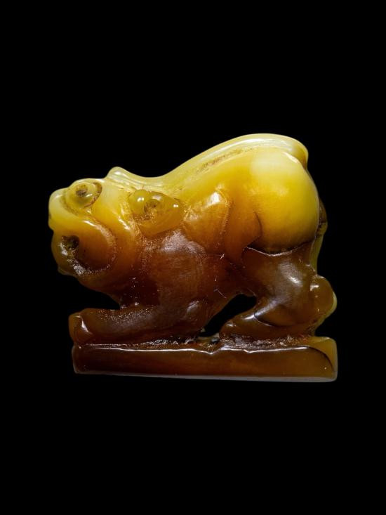 สิงห์งาแกะ ปากเจาะหัวมังกร งานสิ่วแกะมือ ขนาด 2 ซม.หลวงพ่อกัน วัดเขาแก้ว อยู่ในตลับสีผึ้ง สวยสมบูรณ์ |