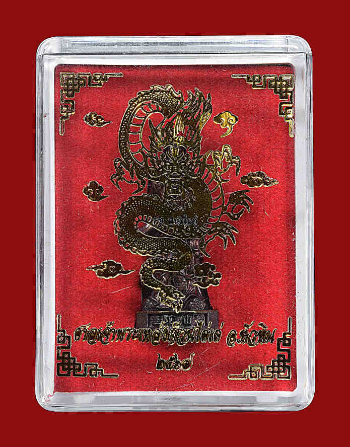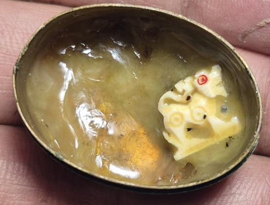 เคาะเดียวแดง .เครื่องรางไม่ทราบชนิดอยู่ในตลับผุกขนาดใหญ่ |