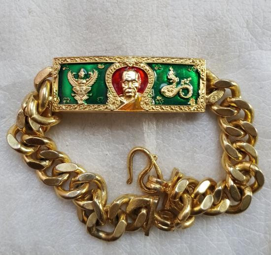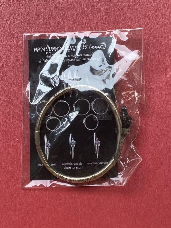 เคาะเดียวแดง หลวงปู่บุดดา กำไลท้าวเวส เนื้อ ทองขาวขัดเงารมดำ |