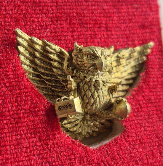 เคาะเดียวแดง หลวงปู่บุดดา รูปหล่อ รุ่นพญานกถึกทือ เนื้อ 3Kฝังพลอยแดง |