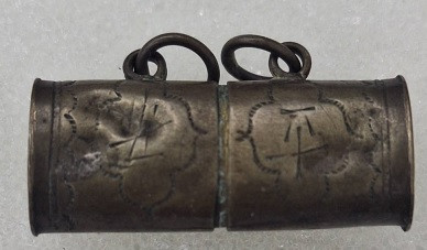 ปลอกใส่เครื่องราง เนื้อทองเหลืองตอกภาษาจีน ไม่ทราบที่ |