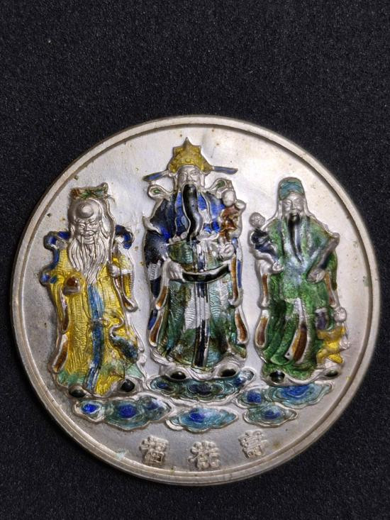 เหรียญเงินลงยา ฮก,ลก,ซิ่ว รุ่นสร้างอุโบสถวัดนก เคาะเดียว 600 |