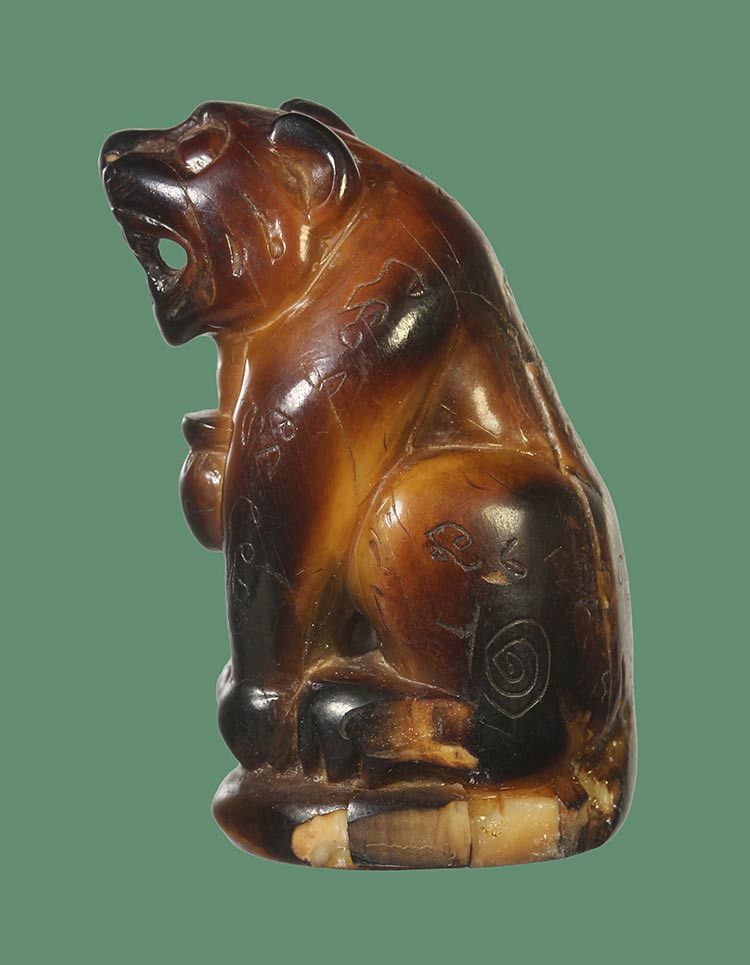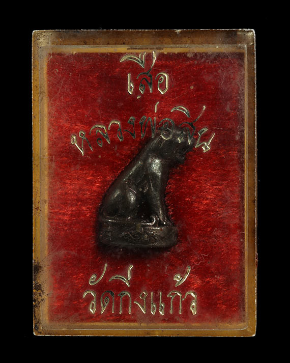 A4087.วัดใจของดี!!! เสือไม่ทราบที่ เลี่ยมเก่าพร้อมสีผึ้งเขียว ปิดทอง เคาะเดียวเเดง |