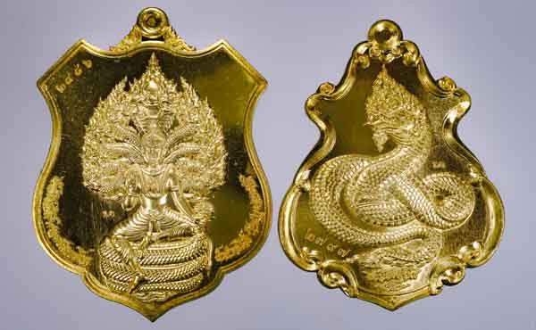 เคาะเดียวแดง 250 พญาครุฑทรงมหิธานุภาพ เชิญธงเศรษฐี วัดครุฑธาราม จ.พระนครศรีอยุธยา พิมพ์ใหญ่ สูง 4.5 ซ.ม. เนื้อตริยะโลหะ (สัมฤทธิ์ผล) ชุบ 2 K ลงยาราชาวดี ซีลเดิมยังไม่ได้แกะ