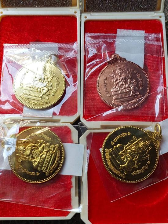 เหรียญจักรเพชรท่านท้าวมหาพรหมธาดา รุ่น เศรษฐี จักรเพชร รุ่น 5 วัดดอน เนื้อทองฝาบาตร 3 เหรียญ เนื้อทองแดง 1 เหรียญ |