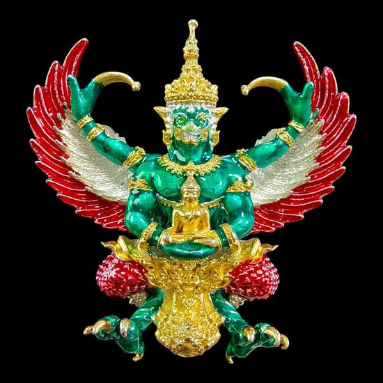 พญาครุฑ ครุฑธานุภาพแห่งพญาครุฑ เศรษฐีเงินไหลมา พิมพ์ใหญ่ เนื้อปีกเครื่องบินลงยาราชาวดี กายสีเขียว หมายเลข ๑๕๒ พร้อมกล่องเดิม |