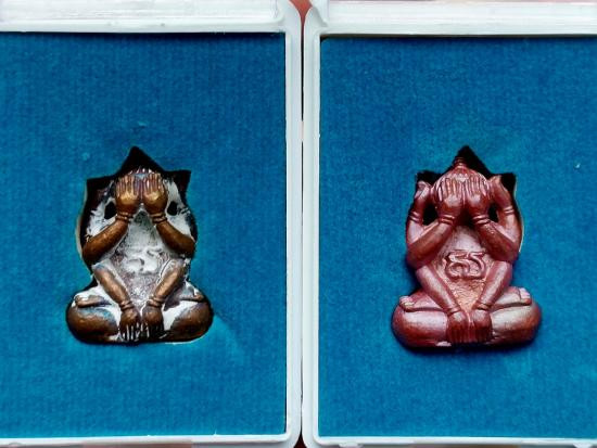 แดงเคาะแรก...รูปหล่อพระราหู รุ่นจันทรุปราคา หลวงพ่อน้อย วัดศรีษะทอง จ.นครปฐม ปี 2546 เนื้อทองเหลืองรมดำ ไม่ผ่านการใช้ พร้อมกล่องเดิมจากวัดครับ |