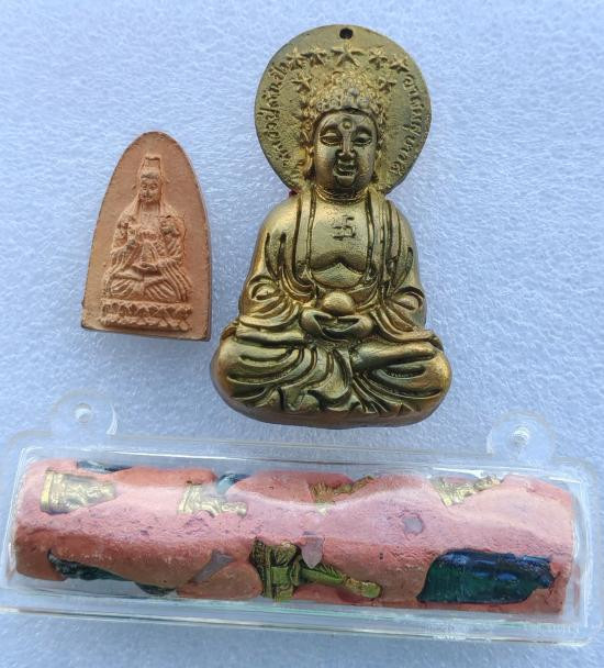 เหรียญ "กังสดาล สะท้านแผ่นดิน" เทพเจ้าไฉ่ซิ่งเอี้ย วัดมังกรกมลาวาส (เล่งเน่ยยี่) กรุงเทพฯ ปี 2553 เนื้อสามกษัตริย์ +เหรียญเจ้าแม่กวนอิม พันมือ |
