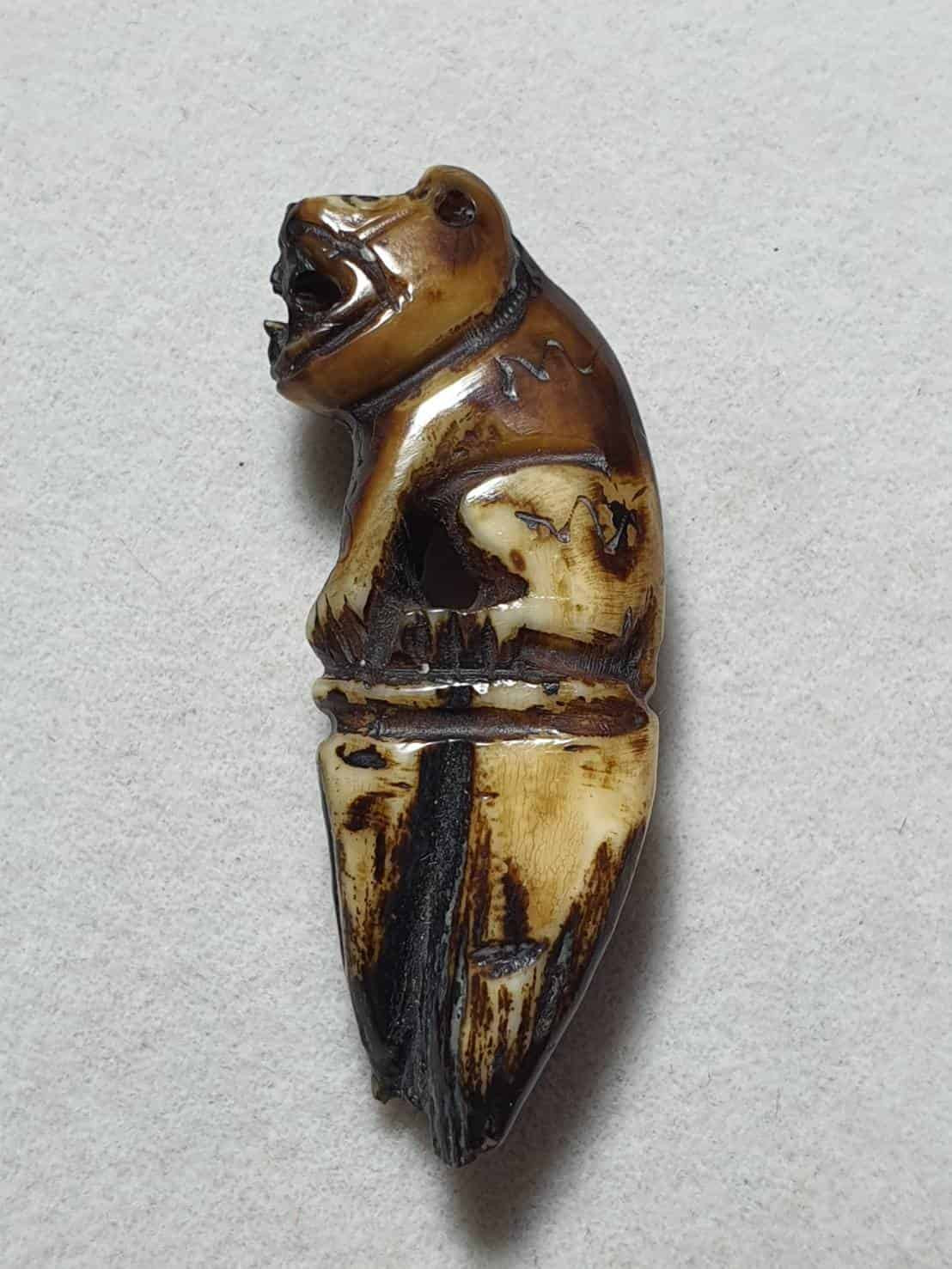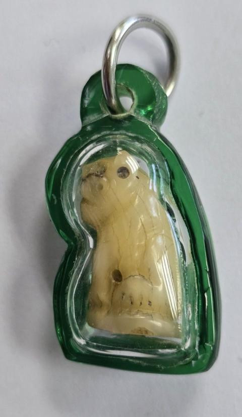 เขี้ยวแกะรูปเสือ ไม่ทราบที่ สภาพใช้ เลี่ยมพร้อม |