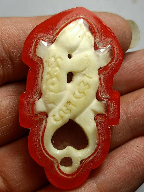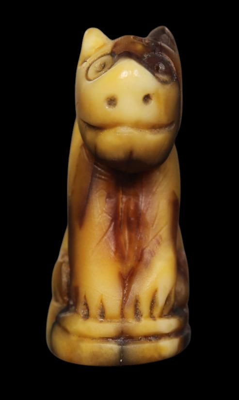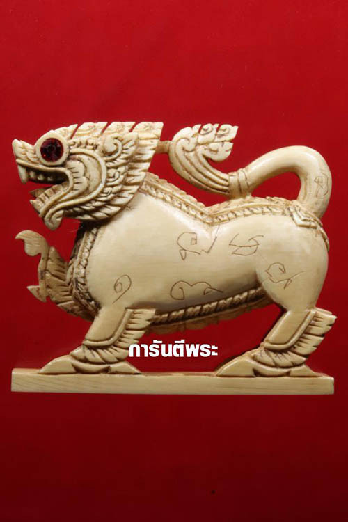 วัดใจ สิงห์ทรงเครื่องยกขา พิมพ์ศิลป์ B เนื้องาช้างแกะ ขนาด 5 ซม. หลวงพ่อหอม วัดชากหมาก ปี2490-2520 |