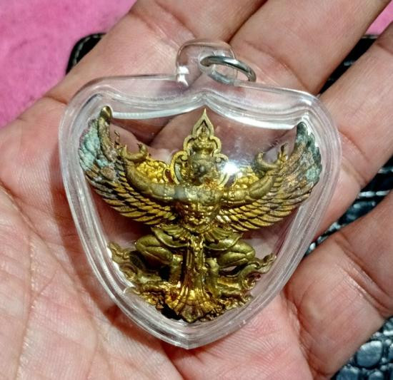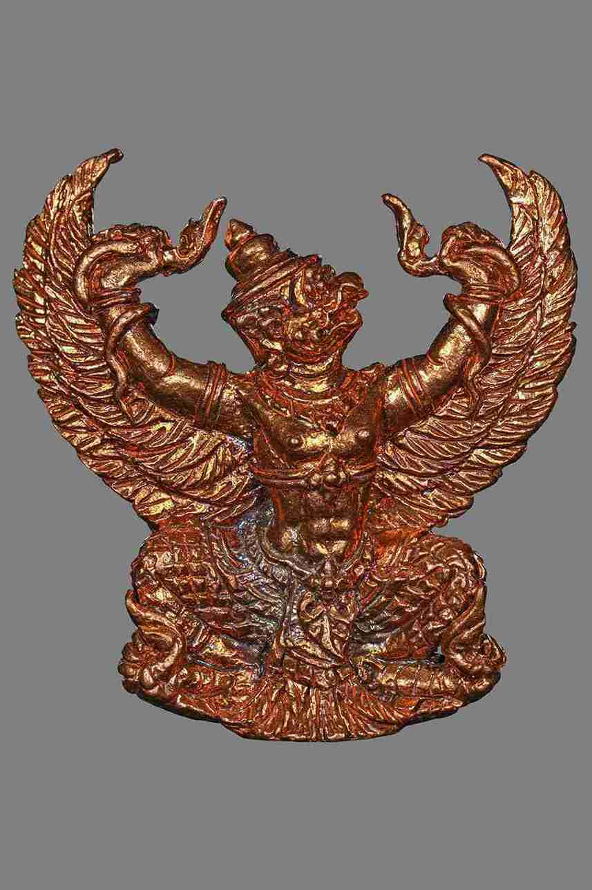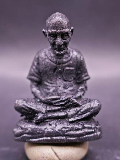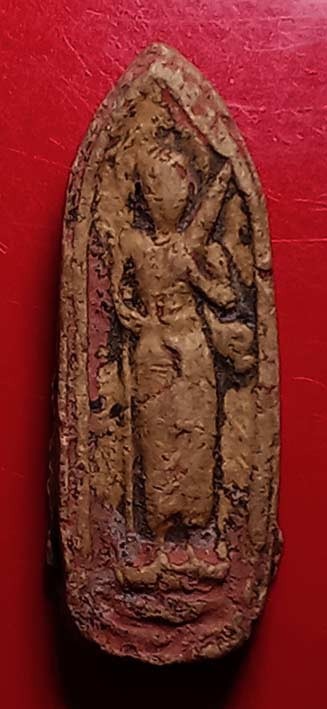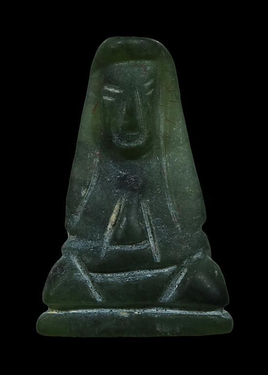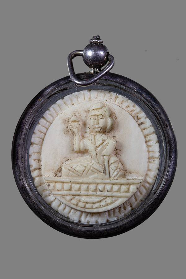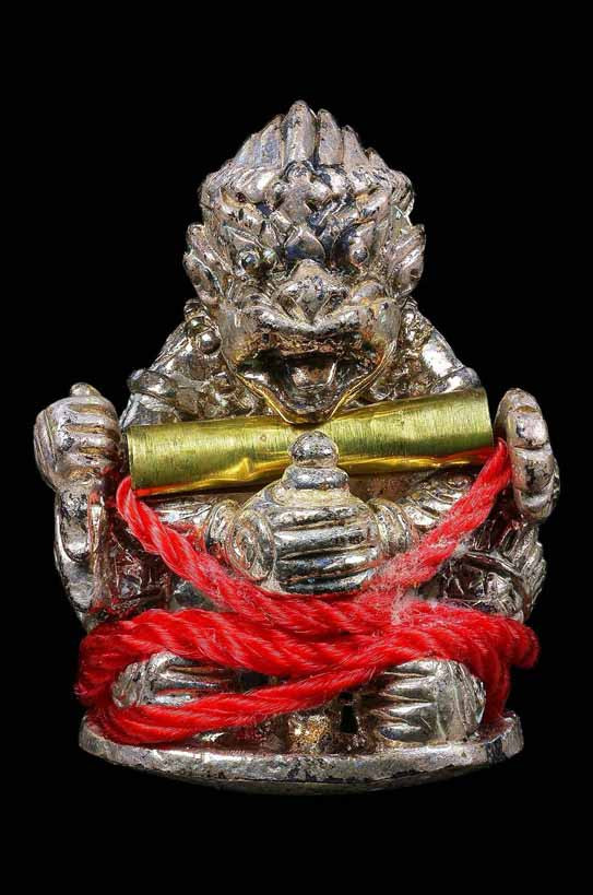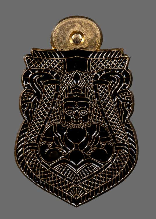 พระราหู ตำหรับหลวงพ่อน้อย นาวารัตน์ ราหูกะลาตาเดียว ทรงใบโพธิ์ มีจารด้านหลัง วัดศรีษะทอง จ.นครปฐม |