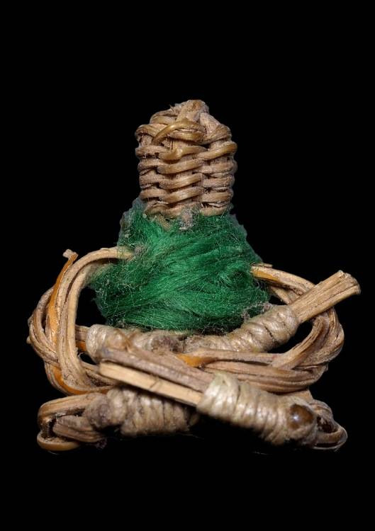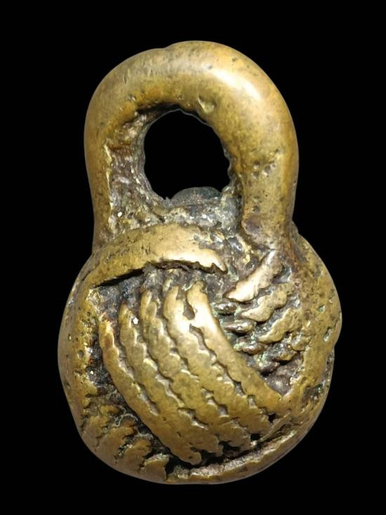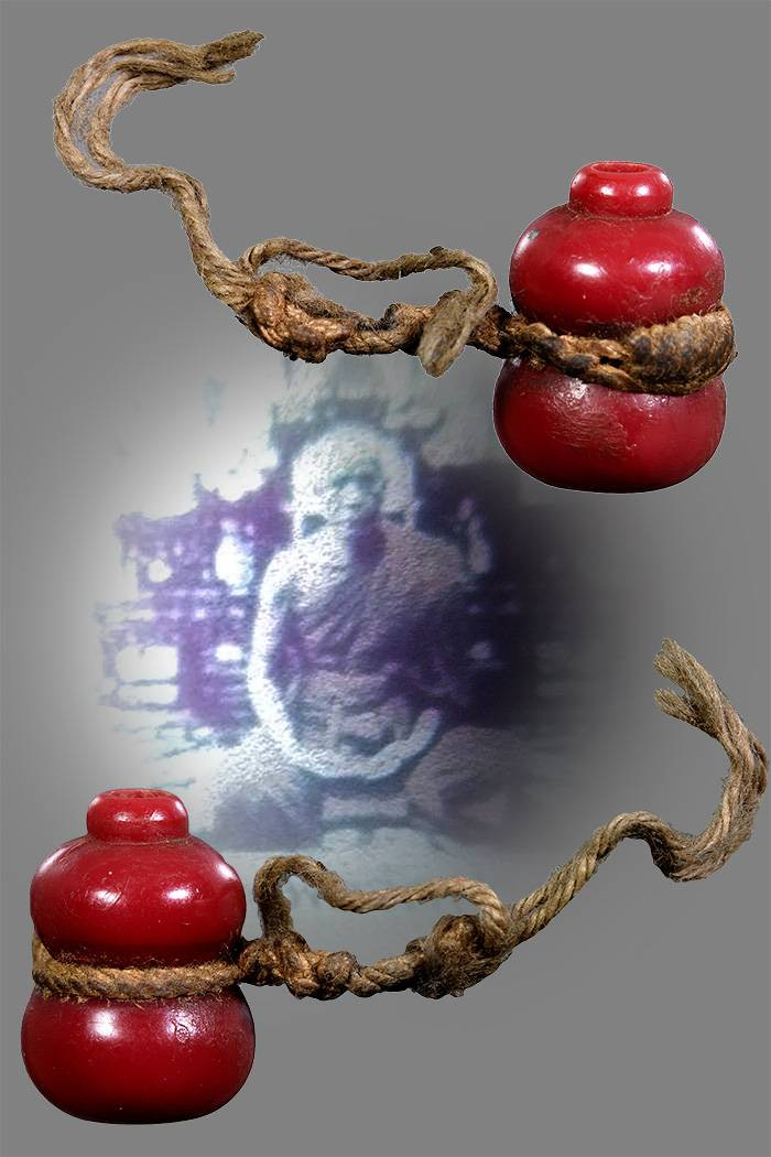 A1253.วัดใจของดี ตะกรุดเก่า ถักเชือกจุ่มรัก ไม่ทราบที่ เคาะเดียวเเดง |