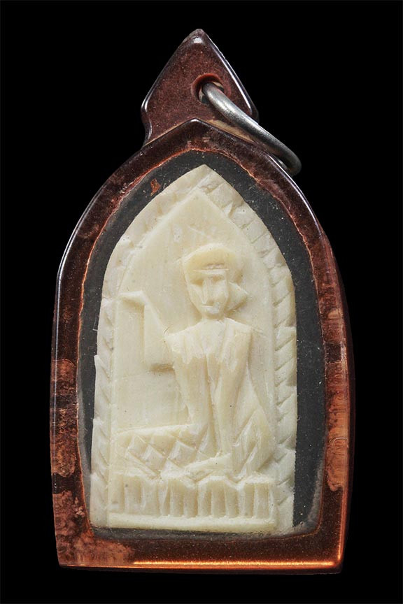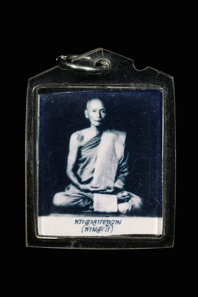 รูปถ่ายขาวดำ อัดกระจก ขนาดห้อยคอ หลวงพ่อจำปา วัดสาลีโข อ.ปากเกร็ด นนทบุรี |