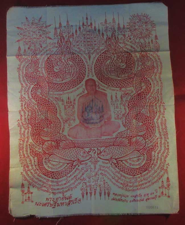 ผ้ายันต์ พระยายันต์ นะเศรษฐีมหาสำเร็จ หลวงปู่น่วม มะสำเร็จ อายุ ๘๘ ปี วัดโพธิ์ศรีเจริญ อ.ศรีประจันต์ สุพรรณบุรี ครับ (พระบ้าน ครับ) |