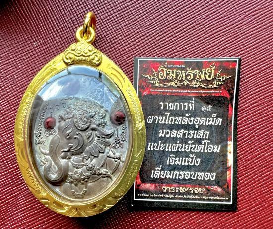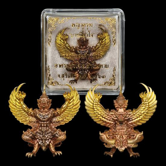องค์พญาครุฑ บารมีสุวโจ หลวงปู่ทองคำ อาศรม สุวโจ อำเภอสำโรงทาบ จังหวัดสุรินทร์ เนื้อชนวนปีกทอง หมายเลข ๖๑๘ พร้อมกล่องเดิม |
