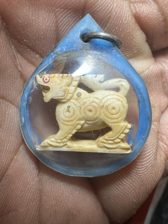 สิงห์แกะจากงา หลวงพ่อมุ่ย วัดดอนไร่ สุพรรณบุรี |