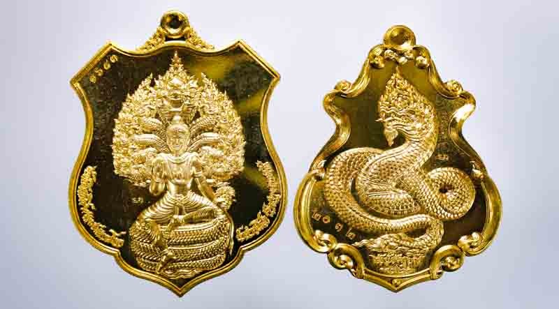 พญาครุฑดวงเศรษฐี ลพ.รวย วัดมาบตาพุด ระยอง รุ่นดวงเศรษฐีปี๖๖ เนื้อทองทิพย์ลงยาธงชาติ |