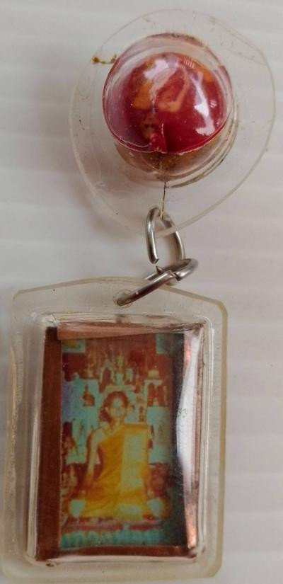เคาะเดียวแดง.....รูปถ่ายหลังหุ้มแผ่นทองแดงยุคต้น หลวงพ่อพร้า วัดโคกดอกไม้ จ.ชัยนาท ปี 2517 (หลังจาร)+ลูกอม |