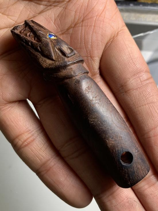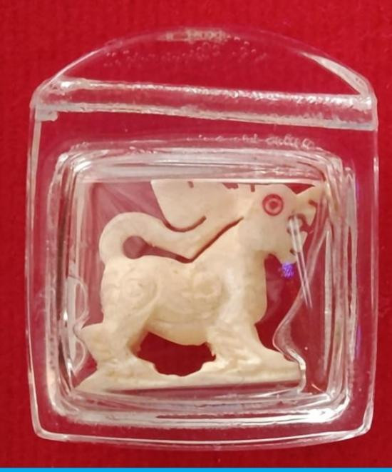 เคาะเดียว ราหูอมจันทร์ งาแกะ มีจาร ศิลป์สวย ขนาดเทียบตามภาพครับ |