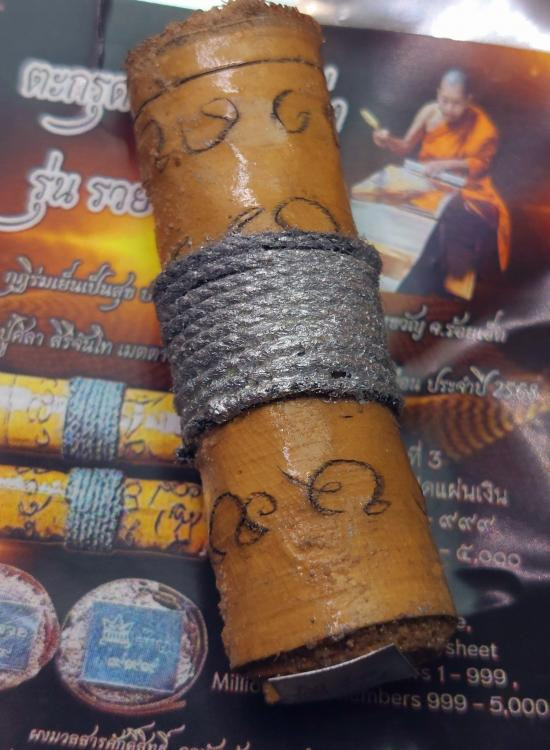 ตะกรุดใบลานอุดกริ่งรุ่นรวยล้าน 68 หลวงปู่ศิลา สิริจันโท สุดยอดมวลสาร ถักเชือกเงินปิดแผ่นเงิน no.2635 |
