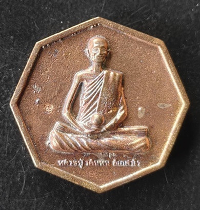 เหรียญพ่อปู่ฤาษีเบิกไพรรายมนต์ พระอาจารย์เลี้ยง วัดจอมเกษ เนื้อทองแดงผิวรุ้ง แจก ทานในพิธี เลข 59 |