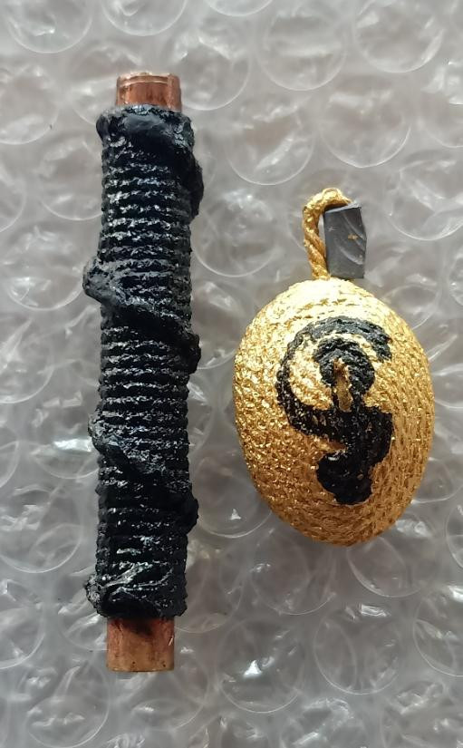 ตะกรุดสายวัดสะพานสูง ทองเเดง ถักเชือกลงรักขึ้น5เสา ยาว4นิ้ว |