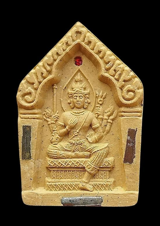พระพรหม เนื้อผงว่านเหลืองมหาเศรษฐี หลวงปู่หงษ์ พรหมปัญโญ ฝังตะกรุด 3 กษัตริย์ รุ่น โชคดีมีสุข" ปี47 |