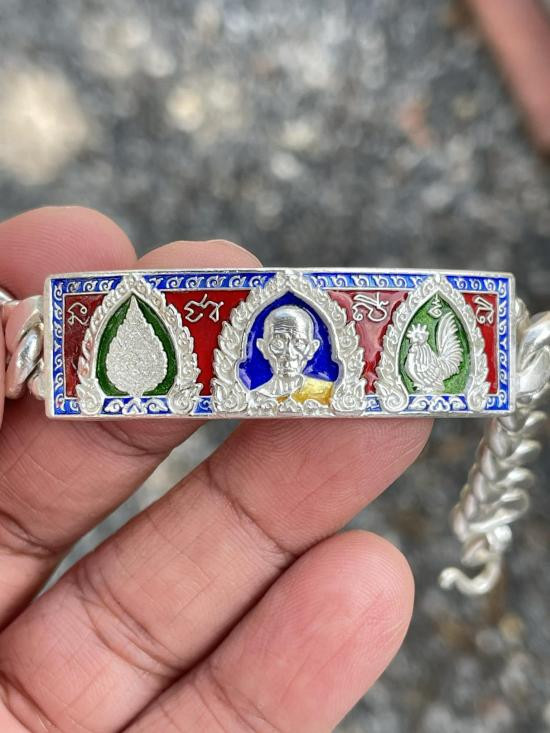 หลวงพ่อรวย วัดตะโก จ.อยุธยา เลสข้อมือ รุ่น เลื่อนสมณศักดิ์ ปี59 เนื้อเงินลงยา ขนาด4บาท |