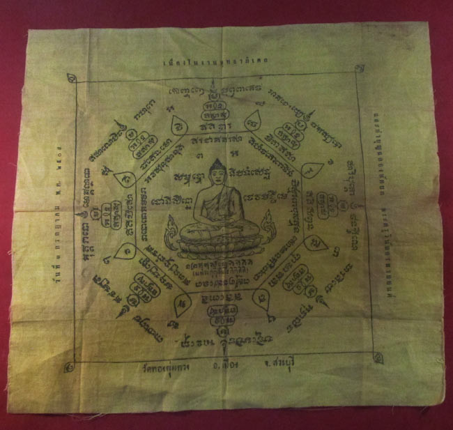 ผ้ายันต์ วัดทองพุ่มพวง อ.เมือง จ.สระบุรี วันที ๓ กรกฎาคม พ.ศ. ๒๕๐๙ ครับ (พระบ้าน ครับ) |