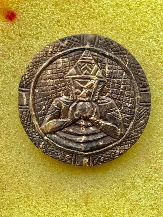 เบี้ยแก้ หลวงพ่อเล็ก วัดทำนบ ออกวัดมะนาวหวาน วิเศษชัยชาญ อ่างทอง สภาพใช้ มีจารบนหลังเบี้ย |