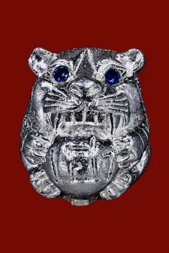 เสือเนื้อตะกั่ว จารเครื่องเลี่ยมเงินหนาๆๆไม่ทราบที่ |