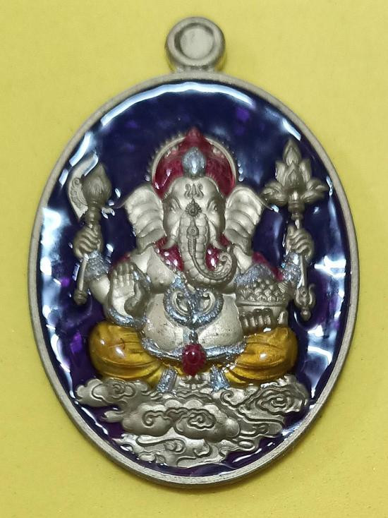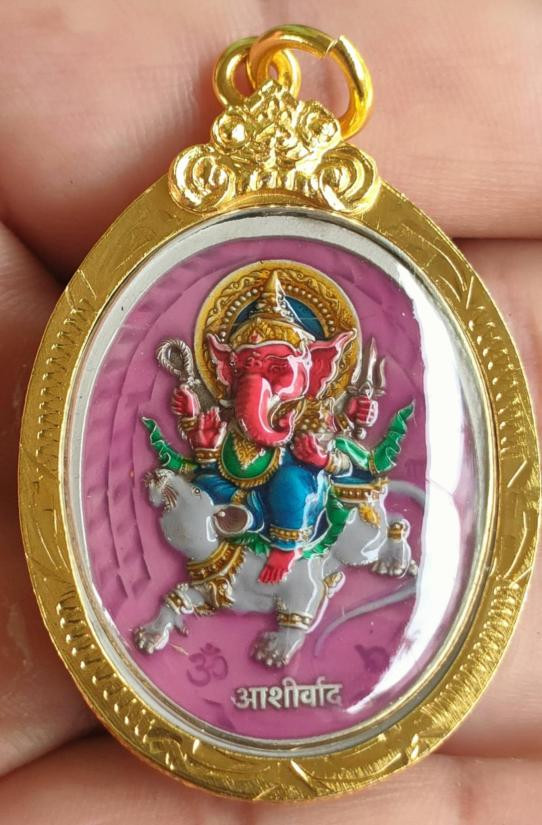 เหรียญพระพิฆเนศ เทพเจ้าแห่งความสำเร็จรุ่น"สมปราถนา"หลวงปู่อิ่ม วัดทุ่งนาใหม่ จ.นครศรีฯ เนื้ออัลปาก้า ลงยาชมพู ลงยาเครื่องทรงลงยาหนูมุสิกะหลังอุดกุหลาบ เลี่ยมกรอบทอง เลข 6 พร้อมกล่อง เลขวันเกิดลป.อิ่ม |