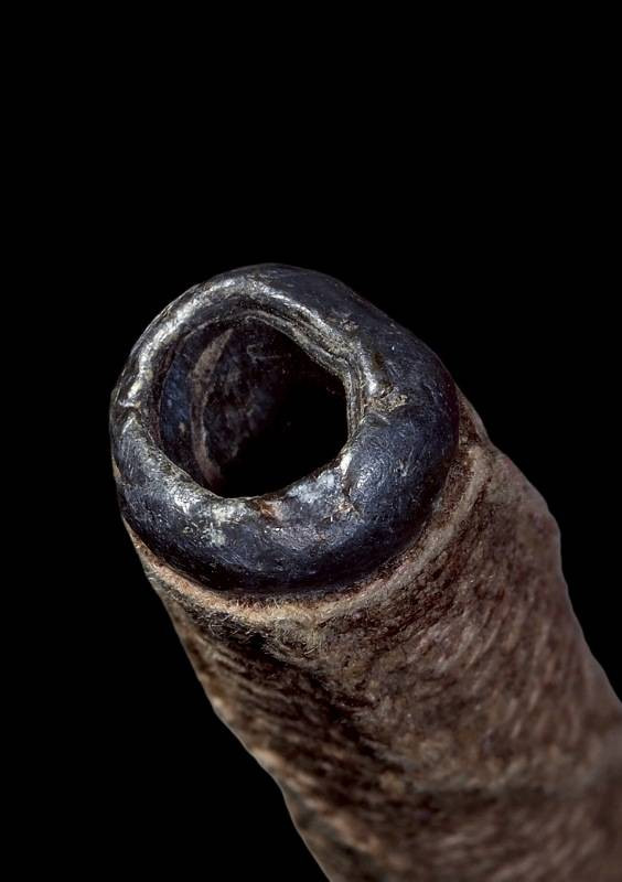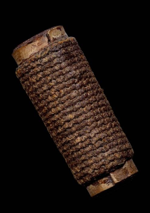 A985.ตะกรุดเก่า พันเชือก ไม่ทราบที่ เขย่ามีกริ่งด้านใน เคาะเดียวเเดง |