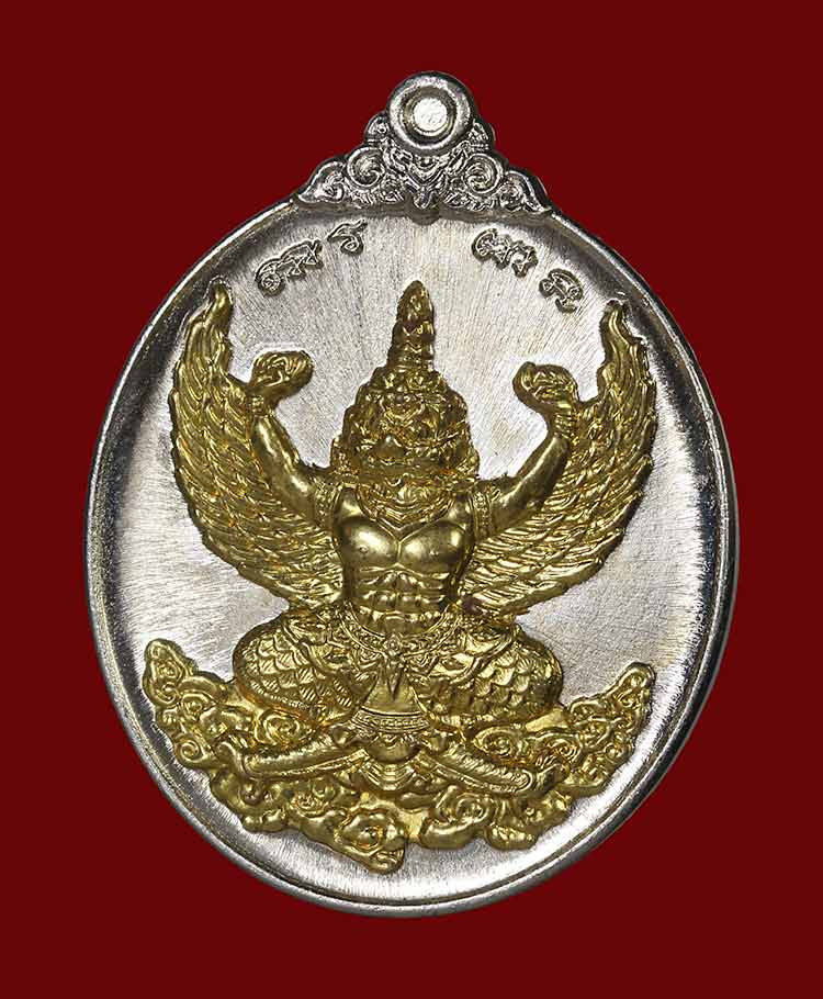 พญาครุฑ "ชนะมาร" รุ่น 5 วัดครุฑธาราม (พิมพ์ใหญ่ ขนาด 4 ซม.) เนื้อตริยะโลหะ ลงยาราชาวดี เบอร์ 510 พร้อมกล่องครับ |