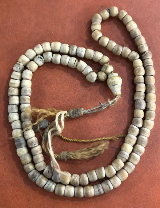 สร้อยประคำกระดูกกรามช้าง ยุคต้น หลวงพ่ออุตตมะ วัดวังก์วิเวการาม จ. กาญจนบุรี |