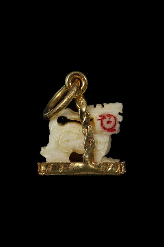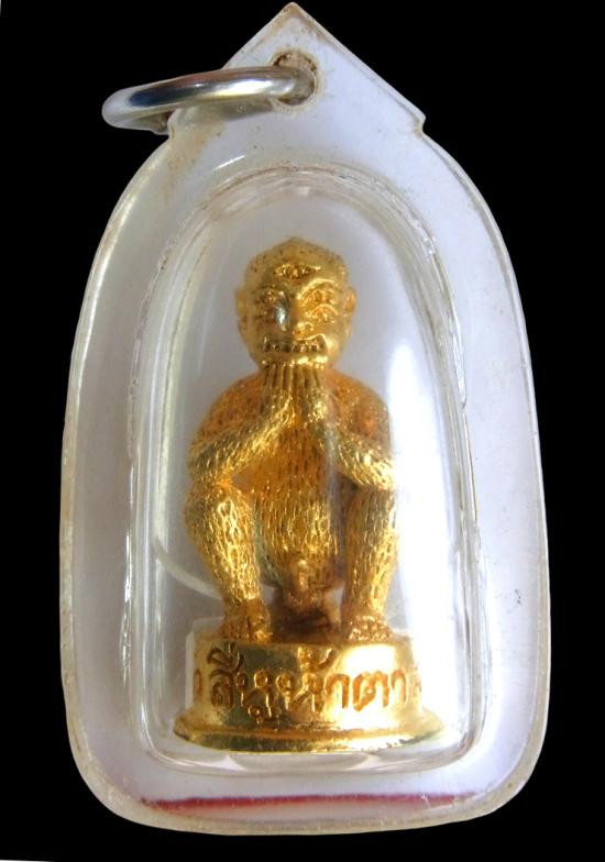 สิงห์สาริกา เลี่ยมกระเช้า หลวงพ่อหอม วัดชากหมาก ขนาดประมาณ 1 ซม |