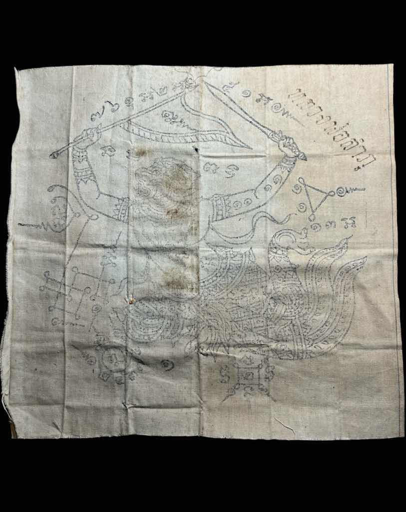 ผ้ายันต์หนุมานเชิญธง หลวงพ่อลำภู วัดใหม่อมตรส ไม่ทราบปีครับ |