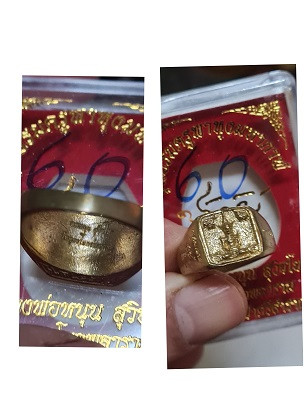 แหวนพระไตรสรณคมน์อันตรายาปิ ขนาดแหวนเบอร์ 60 หลวงพ่อหนุน วัดพุทธโมกข์ สกลนคร |